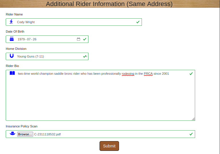 Additional riders in the same household can be added to your account. This option should only be done for riders not able to create their own account and register.