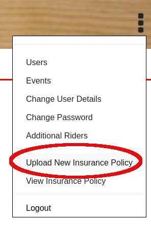 After logging in, click on the menu ellipses (near top right) and select the menu option 'Upload New Insurance Policy'.